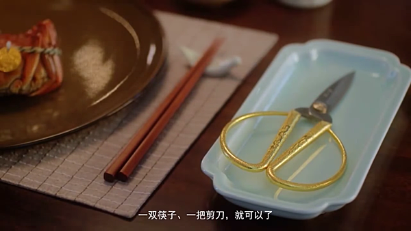 她用一雙筷子,一把剪刀,就可以完整吃完又拼回大閘蟹